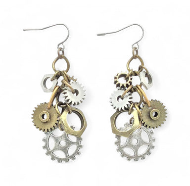 These vibrant earrings showcase a silver and brass plated floral motif anchored on surgical steel posts. Measuring 1" across and 2" in length, they...