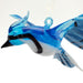 This large blue jay is handmade from hot glass with detailed, individually shaped feathers that give it a striking, lifelike look. Its 6" by 5" size makes it an eye‑catching piece to hang in a window, where the glass picks up the light beautifully.