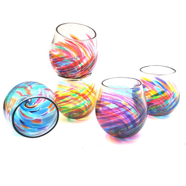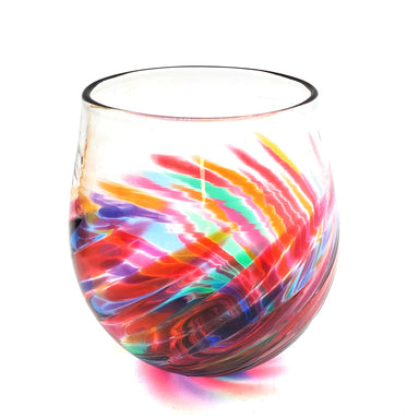 Swirls of glass cane create colorful rainbows in this blown glass tumbler. Perfect for everyday use, and a great way to add a festive flair to your...