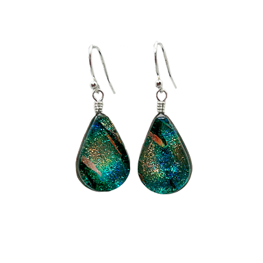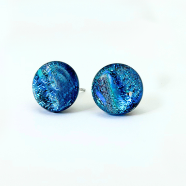 These beautiful sea blue earrings are crafted from dichroic glass, a material created with vaporized metal oxides. Each piece is meticulously cut, ...