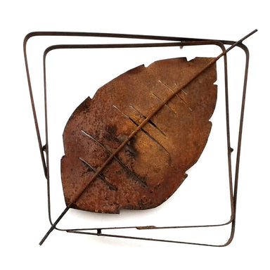 This Aspen leaf doesn’t fall—it lingers. Forged from steel and shaped by hand, it’s suspended in time within an asymmetrical frame that feels both ...