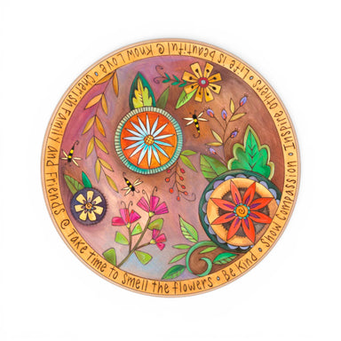 Spring Morning is an 18" lazy susan featuring a vibrant floral illustration accented with bees and warm, uplifting tones. The artwork is framed by ...