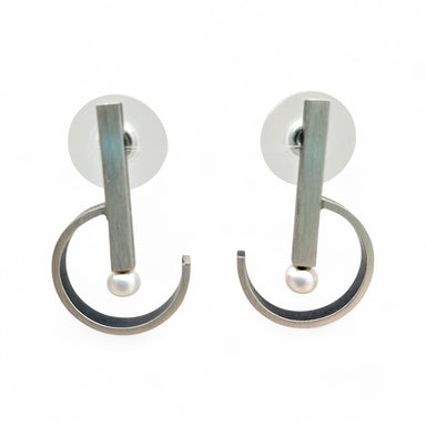 These post-style earrings in brushed sterling silver and gold fill have an elongated design accentuated by a freshwater pearl. They're versatile, p...
