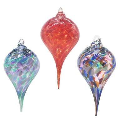 Blazing symbols of adoration blown in an array of vibrant hues. Handmade, one at a time. Approximately 3.5" long. Since these heart ornaments are h...