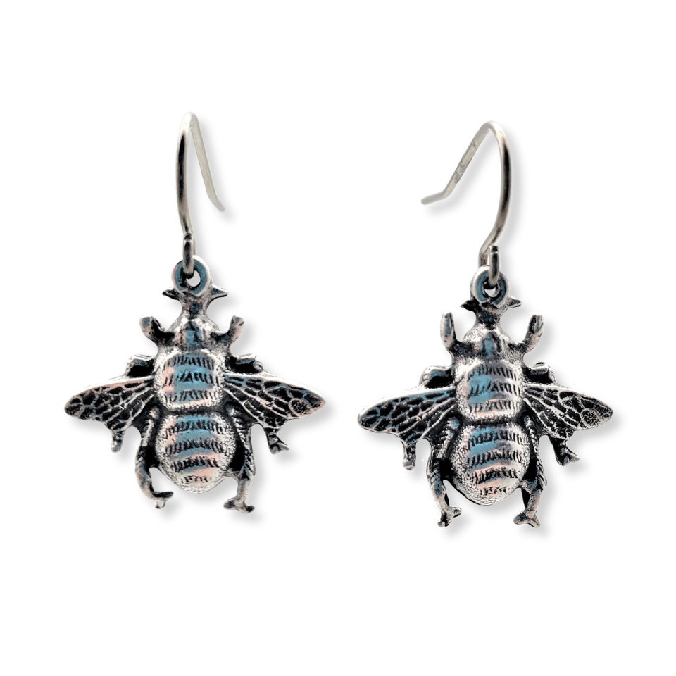Love bees? Then these silver-plated earrings are sure to buzz their way into your heart! Each little bee features a wingspan of approximately 0.75" and measures about 0.75" from top to bottom. Finished with surgical steel ear wires for comfortable, everyday wear. A sweet nod to nature with a shimmer of charm.