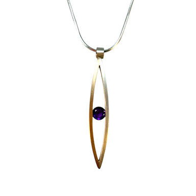 This eye-catching necklace features a vibrant amethyst framed by a brushed sterling silver and gold-filled ellipse—simple, striking, and easy to we...