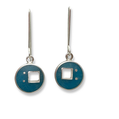These beautiful sea blue earrings are crafted from dichroic glass, a material created with vaporized metal oxides. Each piece is meticulously cut, ...