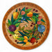 A lush wreath of fruits, flowers, and foliage encircles the surface, with pears, cherries, marigolds, daisies, and blueberries arranged in a vibrant design. At its heart, a single bee hums quietly among the blooms, inviting you to slow down and savor the moment.