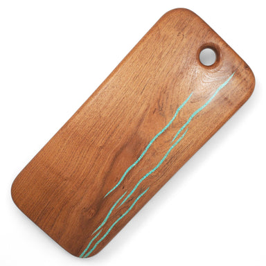 Elevate your kitchen with a one-of-a-kind cheese board! Made from a found slab of mesquite wood and seamlessly inlaid with a durable turquoise epox...