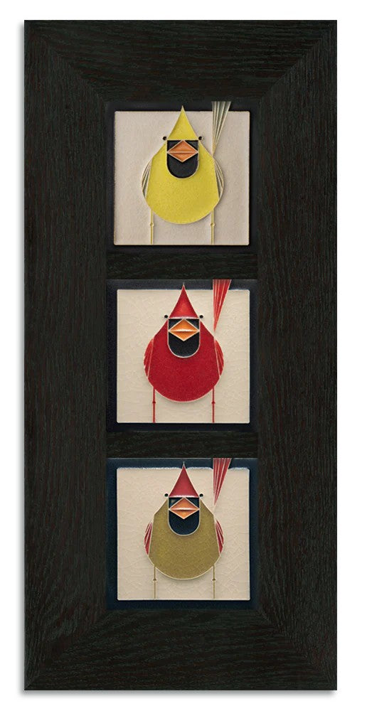 Celebrate the beauty of nature’s rarities with this striking tile trio inspired by the elusive yellow cardinal—a true marvel in the wild. This unique framed set offers a fresh take on Charley Harper’s beloved cardinal designs, combining his iconic minimal realism with a modern twist that’s as bold as it is beautiful.