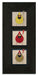 The tiles are elegantly displayed in a triple-tile frame made of quarter-sawn oak, finished in a deep ebony stain that highlights the wood’s natural grain. Thoughtfully constructed with mitered corners and stapled joints, the frame measures 7.5" x 16.25" with a 2" profile—perfect for making a statement on any wall.