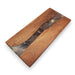 This handcrafted sushi board is made from richly grained mesquite wood. Each board is one-of-a-kind, with natural cracks and veins carefully filled with smooth river rocks to create a striking contrast of texture and tone. No two are ever alike—every piece carries its own distinctive character, making it as unique as the meals you serve.
