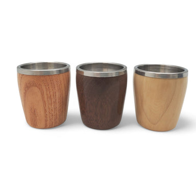 These wooden shot glasses feature a stainless steel lining and are handcrafted from locally sourced hardwood. While they share a similar appearance...
