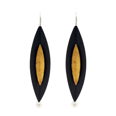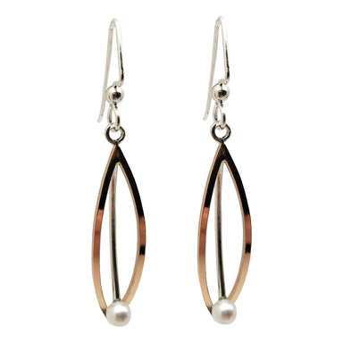These post-style earrings in brushed sterling silver and gold fill have an elongated design accentuated by a freshwater pearl. They're versatile, p...