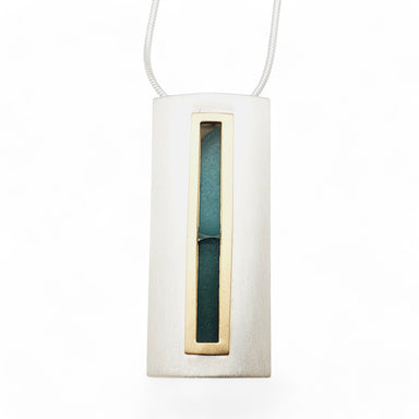 This brushed sterling silver & gold fill pendant features a center of naturally tumbled seaglass and an attractive accent pearl . The pleasing...