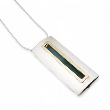 Brushed sterling silver and gold filled necklace accented with a white freshwater pearl. This gorgeous pendant hangs from an 18" silver chain and m...