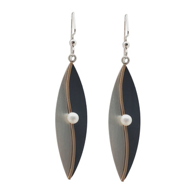 A luminous pearl takes center stage in these striking earrings, set in a mix of oxidized silver, brushed sterling silver, and warm gold fill for a ...