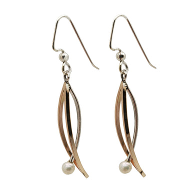 These sterling silver & Nu-gold earrings feature a freshwater pearl accent. These earrings look great with a pair of casual blue jeans but hol...