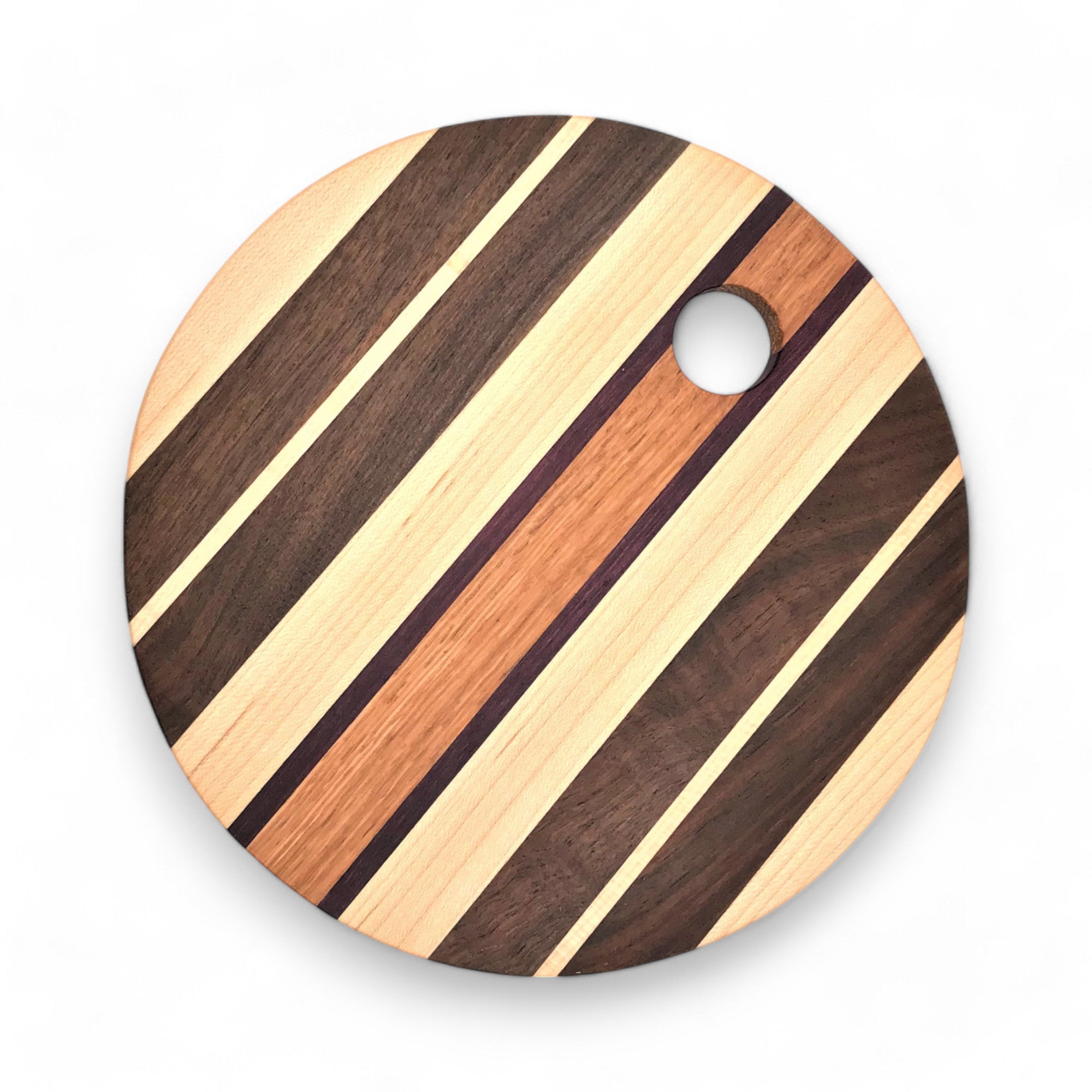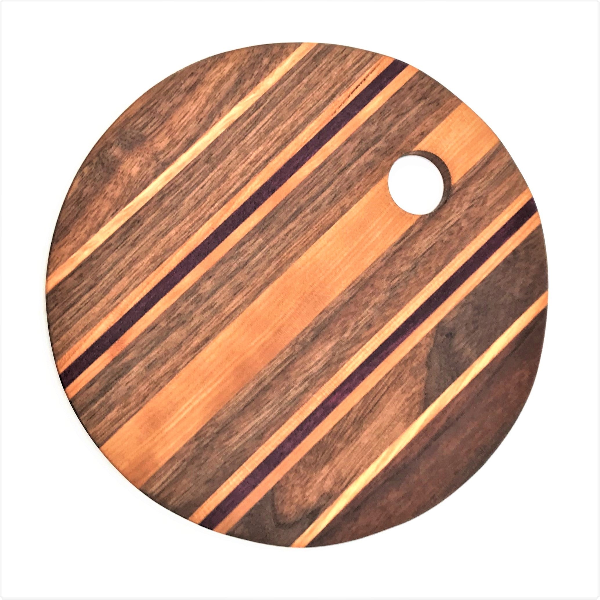 Add a touch of artisan charm to your table with these beautifully handcrafted small round cutting boards. Made from a curated selection of premium hardwoods, each board is a unique blend of rich tones and natural grain patterns.
