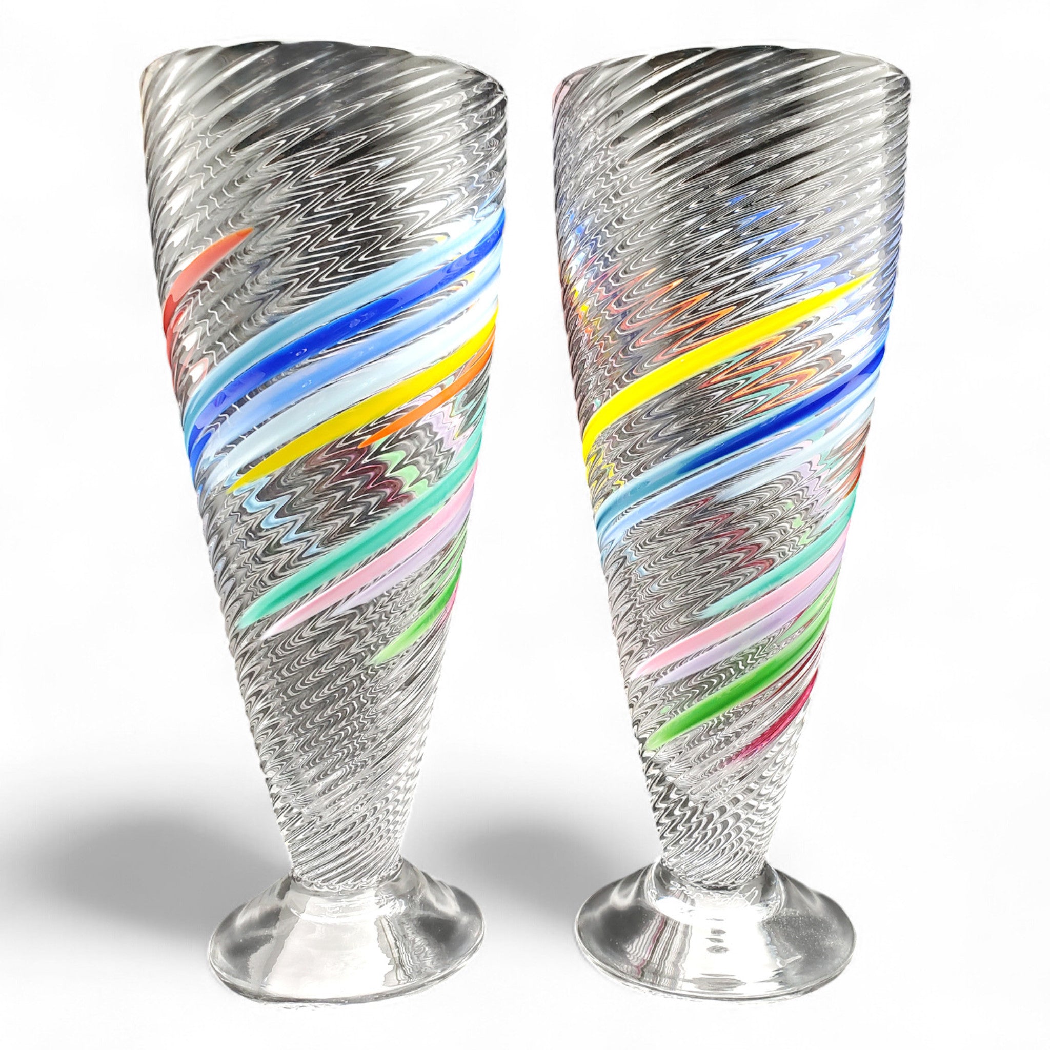 This hand-blown ribbed drinkware features colored glass cane that creates rainbows, making even simple drinks feel extraordinary! Perfect for champagne and fizzy water, a batch of sangria at your next dinner party, or a gathering with friends! Not just for ice cream floats - this glass has endless potential!